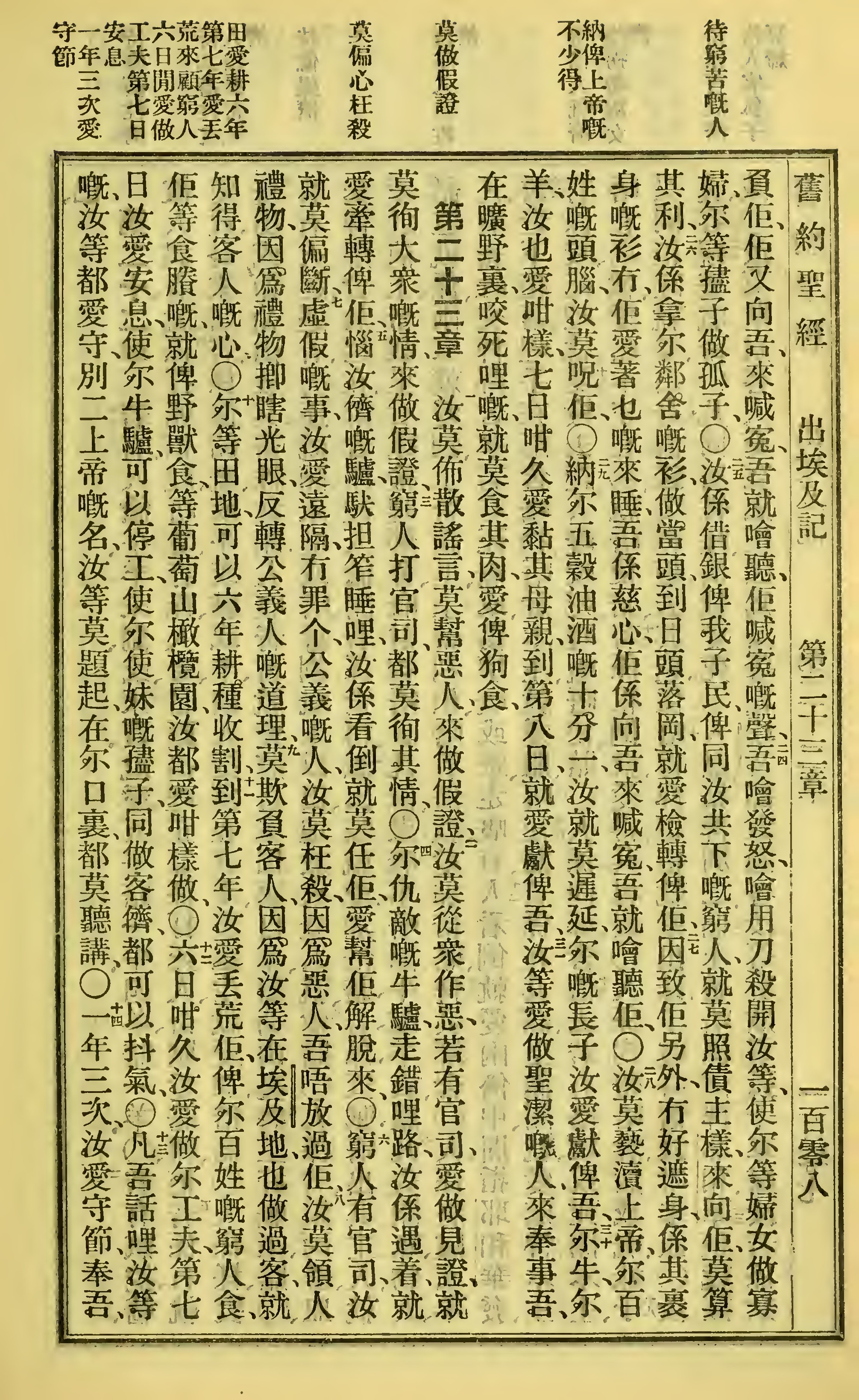 1923年客話新舊約聖經漢字版 出埃及記 22 章 23 節到 23 章 14 節